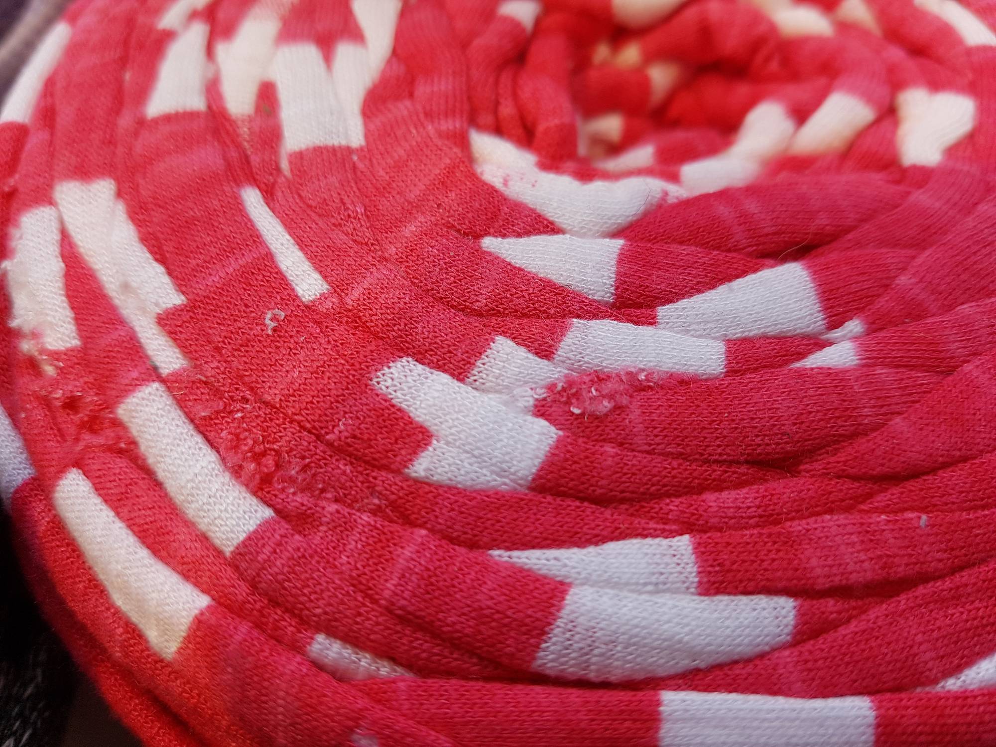 C'est un gros fil en tissu recyclé, une grande variété de couleurs, de matières et de textures